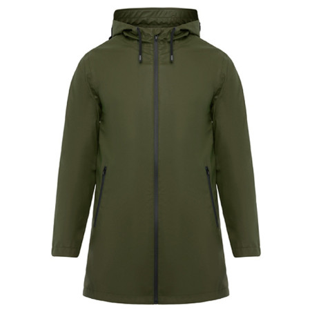 Nepromokavá bunda s kontrastními detaily v černé bervě a rozparkem na zadním lemu. Bunda má kapuci s kšiltem a dvě boční kapsy na zip. Materiál 100% nepromokavý polyester. Gramáž 210 g/m2. Typy barevného provedení: černá, námořní modrá, vojenská zeleň. Velikosti: S-3XL.