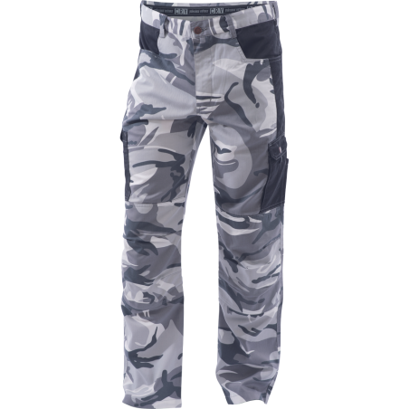 Pánské kalhoty z lehkého T/C twillu 190 g /m², 2 zadní nakládané kapsy, 2 boční kapsy a 2 multifunkční kargo kapsy, zesílené část kolen, skvěle padnoucí střih, atraktivní design kamufláž. Normy EN ISO 13688. Svrchní materiál: 65 % polyester, 35 % bavlna, 190 g/m². Barvy: maskáčové, šedé, béžové. Vel.: S-3XL.