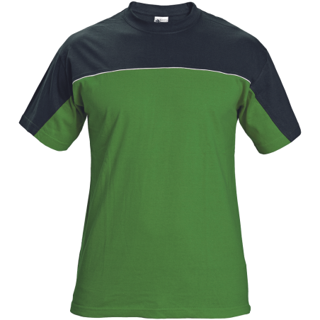 Kvalitní pánské dvoubarevné tričko s krátkým rukávem; lem průkrčníku ze žebrovaného úpletu s 5% podílem elastanu. Svrchní materiál: 100 % bavlna, 155 g/m². Typy barevného provedení: světle modrá, zelená, tmavě hnědá. Velikost: S-4XL.