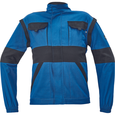 Pánská pracovní bunda se zapínáním na zip krytým légou; odepínatelné rukávy; 2 přední kapsy, 2 náprsní kapsy; zesílení namáhaných míst loktů a ramen; reflexní pruhy po odvodu rukávů a ve spodní části zad; pružné manžety rukávů a spodní obvod v pase. Svrchní materiál: 100 % bavlna, 260 g/m2. Typy barevného provedení: zelená, červená, modrá, navy, černá, antracitová. Velikost 44-68.